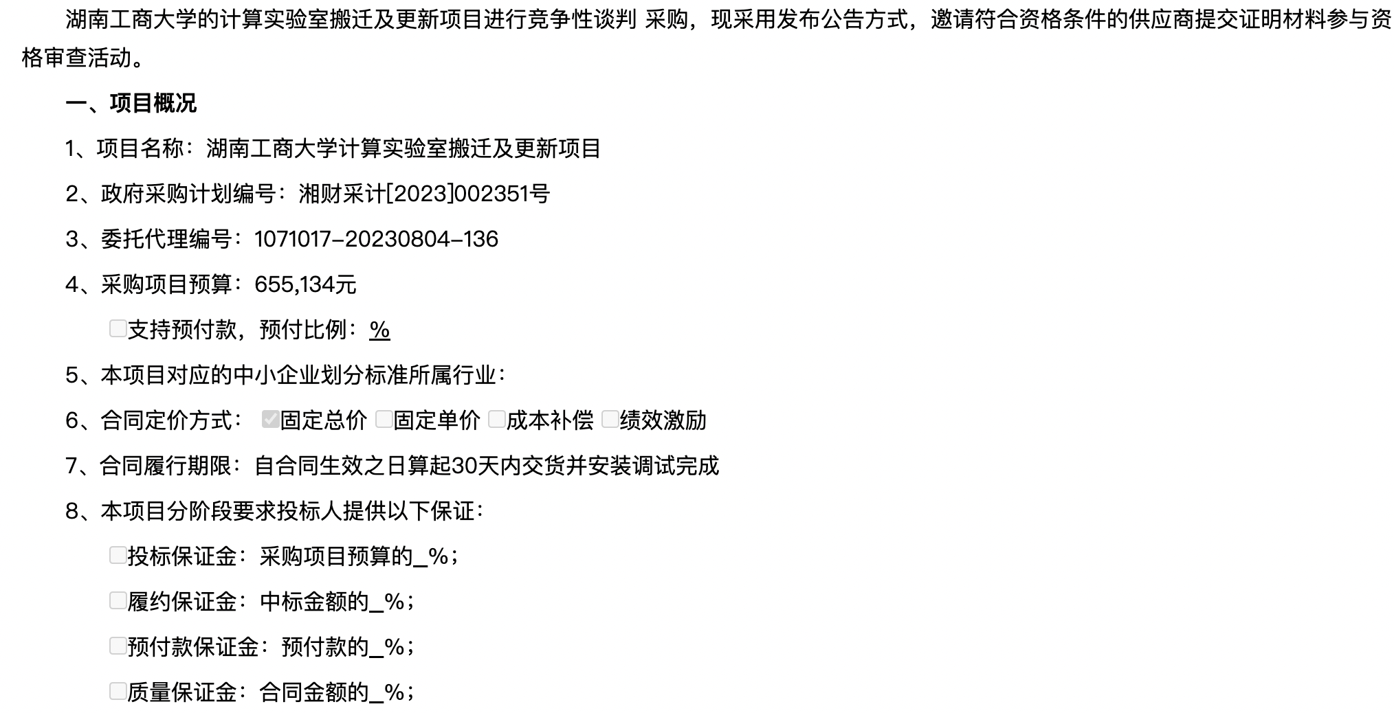湖南工商大学计算实验室搬迁及更新 项目竞争性谈判邀请公告