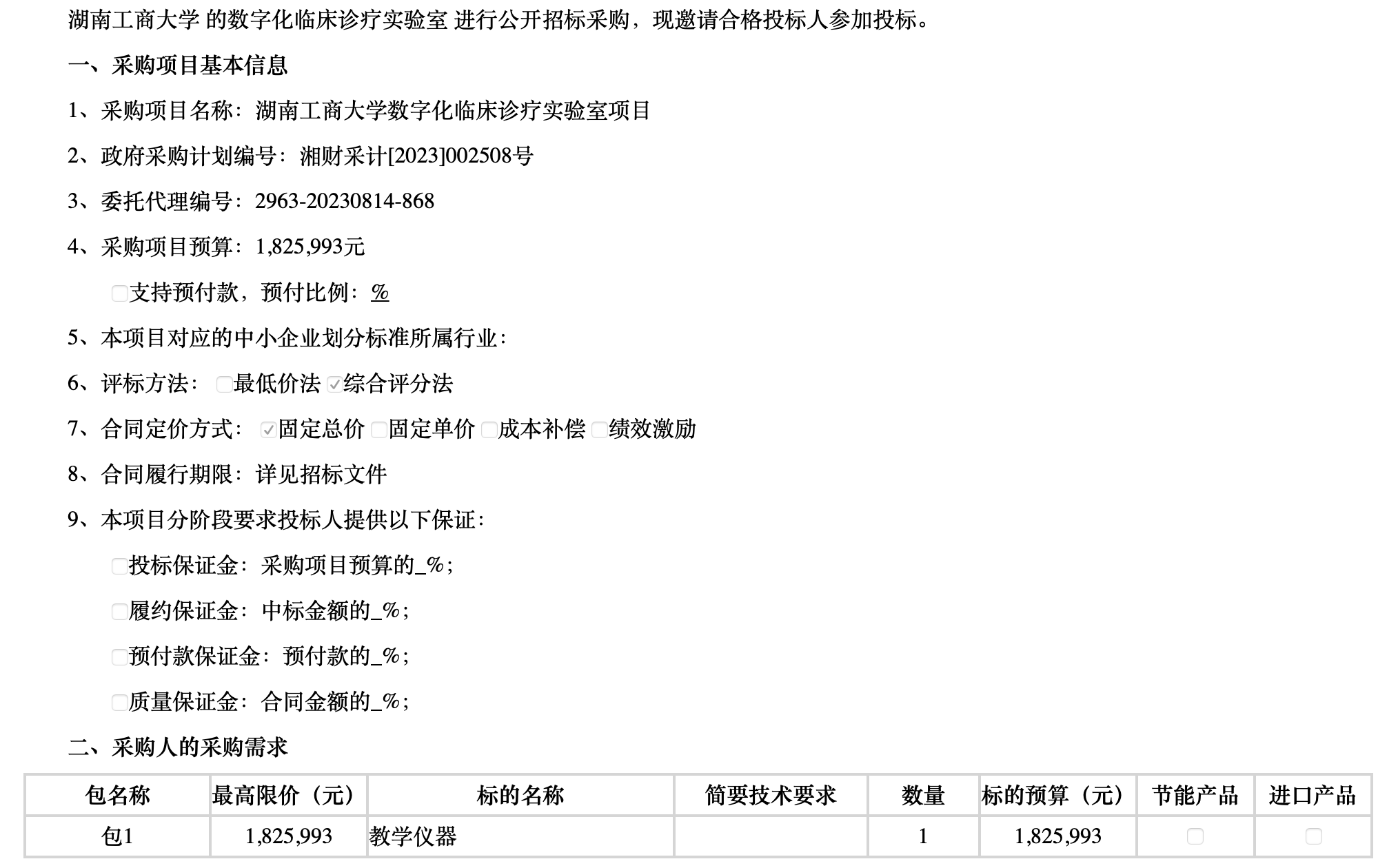 湖南工商大学数字化临床诊疗实验室 项目公开招标公告