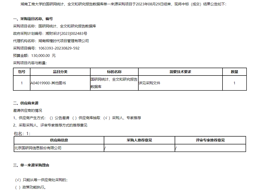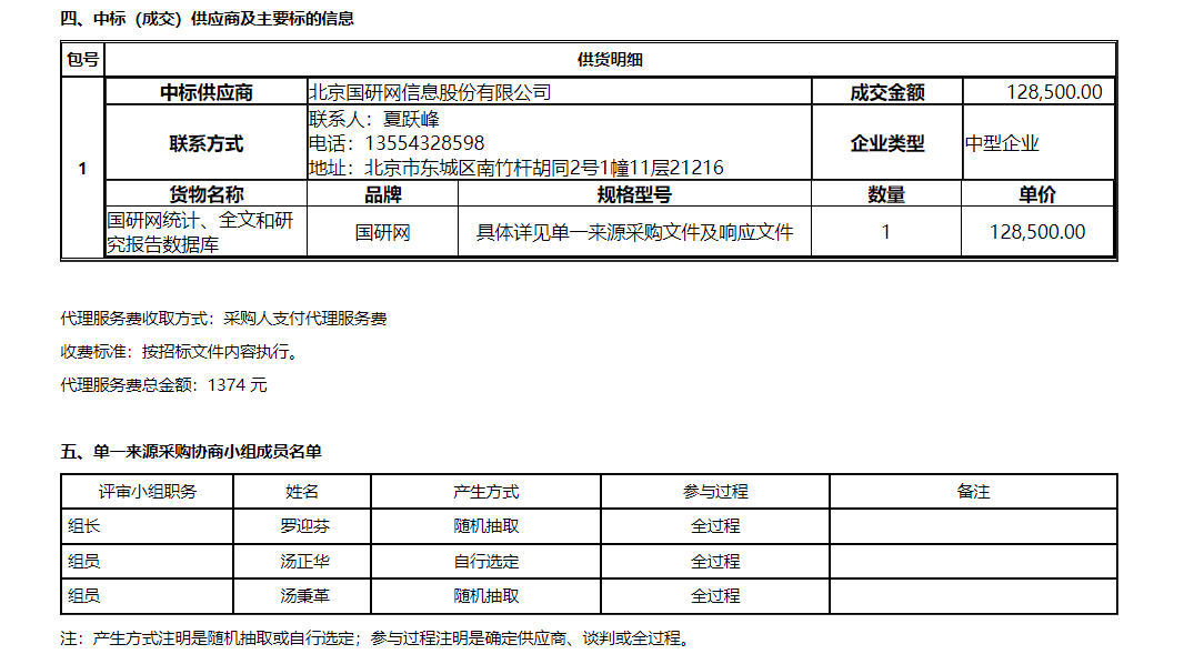 国研网统计、全文和研究报告数据库中标(成交)公告