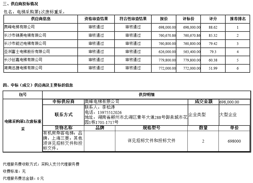 湖南工商大学二办公楼更换电梯项目中标(成交)公告