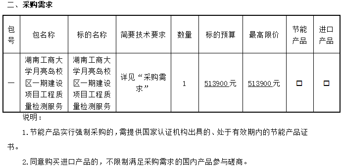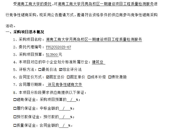 湖南工商大学月亮岛校区一期建设项目工程质量检测服务磋商邀请