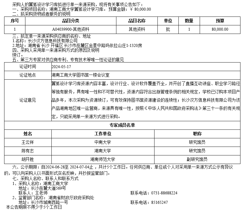 湖南工商大学翼狐设计学习库单一来源采购公示