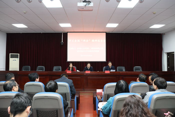 3月23日下午,全国人大代表、省政协副主席、省科技厅厅长赖明勇应邀来我校举行学习全国“两会”精神报告会。报告会由校党委书记唐亚阳主持。校长陈晓红,校党委副书记夏继春,副校长彭进清、曾伏秋、黎定军,校领导聂国卿出席了报告会,学校副处级以上干部聆听了报告。这也是校院两级中心组学习的重要内容。