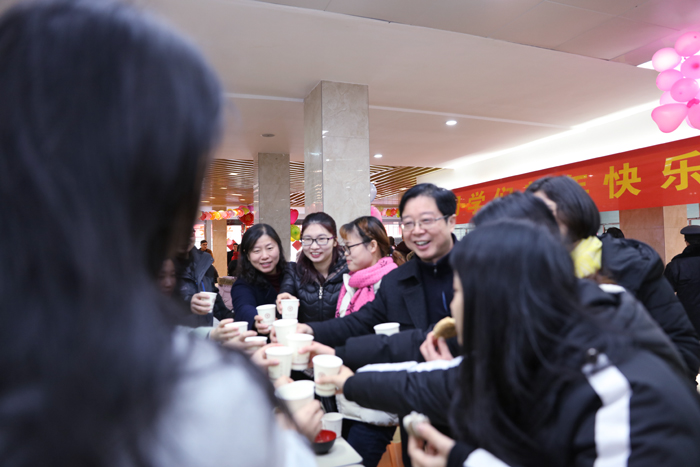 盛世鸡鸣犹悦耳,新春燕舞自开心。1月21日是我国农历小年,校党委书记唐亚阳,副校长曾伏秋、刘国权,校党委委员、党政办主任杨良奇一行在楚枫轩与332名留校学生欢聚一堂,共贺新年。