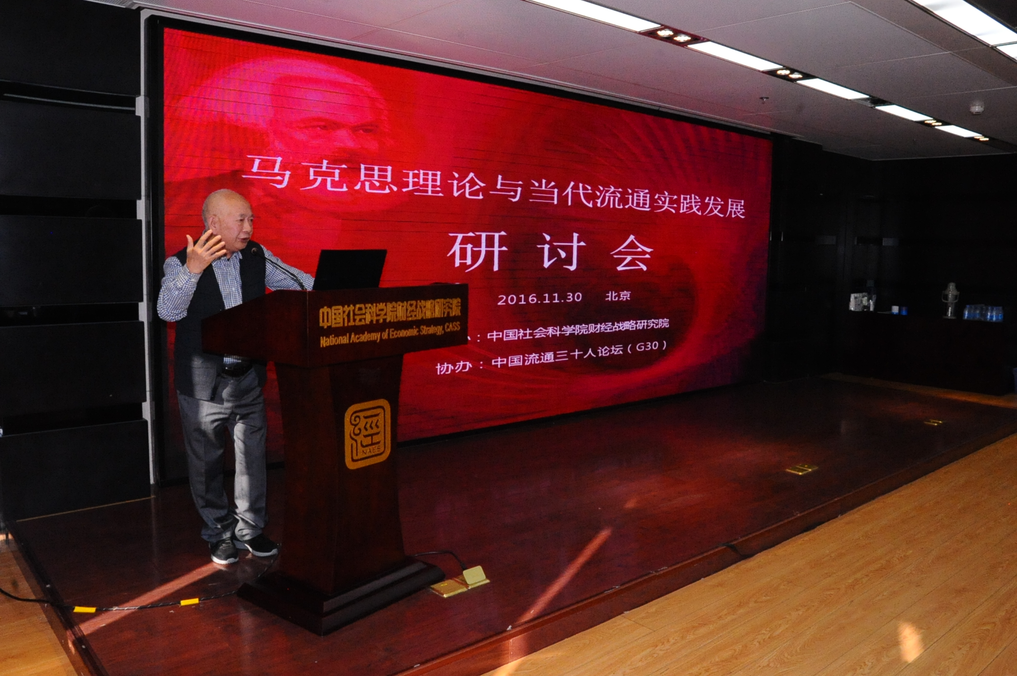 为贯彻习近平总书记系列重要讲话精神,加强马克思主义政治经济学研究,进一步推进马克思主义流通理论的建设与创新发展, 11月30日,由中国社会科学院财经战略研究院主办、中国流通三十人论坛(G30)协办的“马克思理论与当代流通实践发展”研讨会在北京举行。来自国家商务部、发改委、中国商业联合会、中国社会科学院、中国人民大学、首都经贸大学、浙江工商大学、广东财经大学、湖南商学院等单位流通学术界著名专家应邀参加会议,并分别发言。中国社科院学部委员、财经战略研究院院长高培勇教授在会议致词中强调,改革开放以来中国经济学的发展离不开马克思主义这个源头,要努力在马克思主义中国化的探索中建设有中国特色中国气派中国风格的经济学。