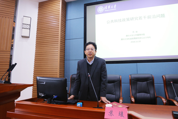 11月10日上午,清华大学公共管理学院苏竣教授应邀主讲第四十一期麓山大讲堂。此次讲座主题为“公共科技政策研究的若干前沿问题”。曾伏秋副校长主持了本次讲座。