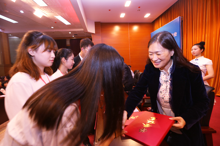 陈晓红校长代表学校向参加此次大赛的老师、学生以及辛勤工作的工作人员表示诚挚的感谢,同时也向全体获奖单位和选手表示热烈的祝贺。她认为,高校已经成为创新创业的主阵地,青年学子成为未来企业家的重要源泉,高校要坚持把创新创业的“双创精神”贯穿到教学、研究和培养的全过程。她指出,在创新创业的浪潮中,我校始终致力于在校训“至诚至信,为实为新”的指引下,不断强化创新教育的内涵。特别注重在大数据、移动互联网、物联网、云计算基础上的创新创业,为此,学校新建了创客中心、创客书吧、创客工场,以此来为青年学子创业提供更多的场地,培养更多具有自主创业精神的青年大学生,为国家的经济发展做出更大的贡献。