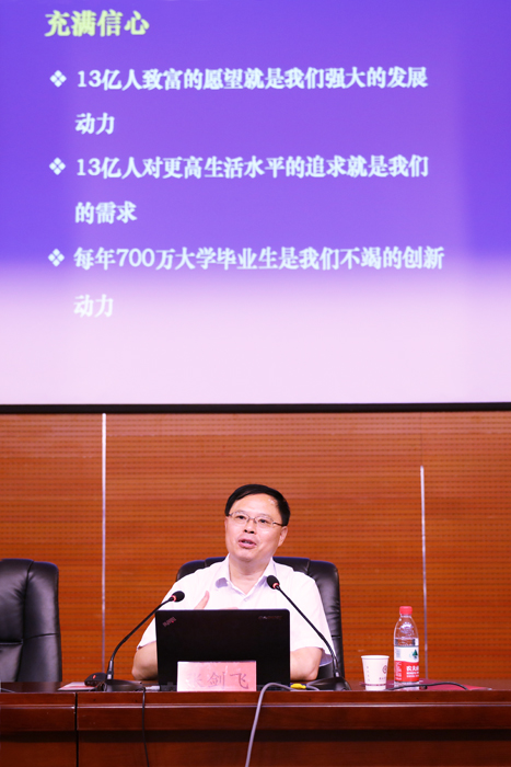 7月5日下午,湖南省人民政府副省长张剑飞莅临我校,作客麓山大讲堂,以 “对当前经济形势的若干认识”为题,结合学习习近平总书记关于经济发展的系列论述的体会,深入分析当前经济形势,探讨供给侧结构性改革、产能过剩、房地产、消费等热点话题,为师生作了一场内涵丰富的经济形势分析讲座。校长陈晓红主持讲座,简要介绍了张剑飞副省长的经历。