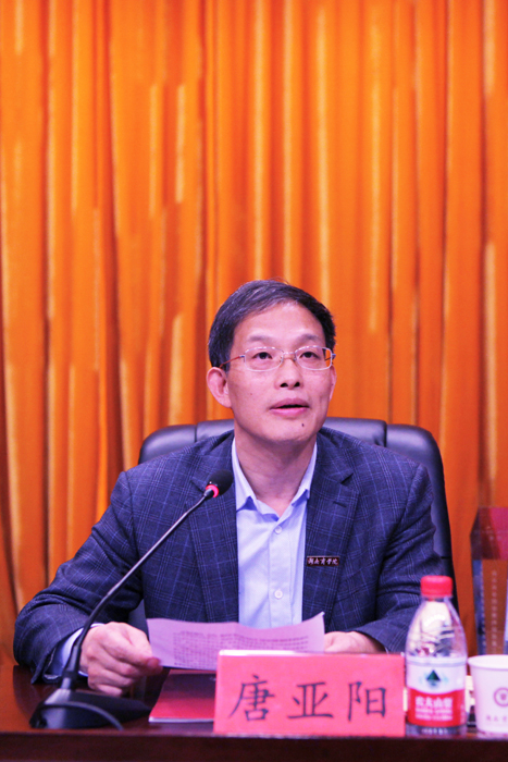 校党委书记唐亚阳在致辞中肯定了学校改革建设发展成效,并结合十八届五中全会精神和国务院办公厅最新出台的《关于深化高等学校创新创业教育改革的实施意见》,对高校如何创新体制机制、推动产学研协同发展作了阐述。他指出,创新的事业呼唤创新的人才,而创新的人才需要在创新的活动中培育,科研创新活动和创新创业教育都是培养创新人才、产出高水平创新成果的重要途径,二者紧密关联、相辅相成,共同推动创新事业发展。唐亚阳书记要求,全校师生员工要以此次会议为契机,更加自觉地投身科研创新活动,更加主动地投身创新创业教育改革,为学校事业和经济社会的发展,做出新的更大的贡献。