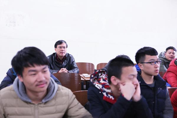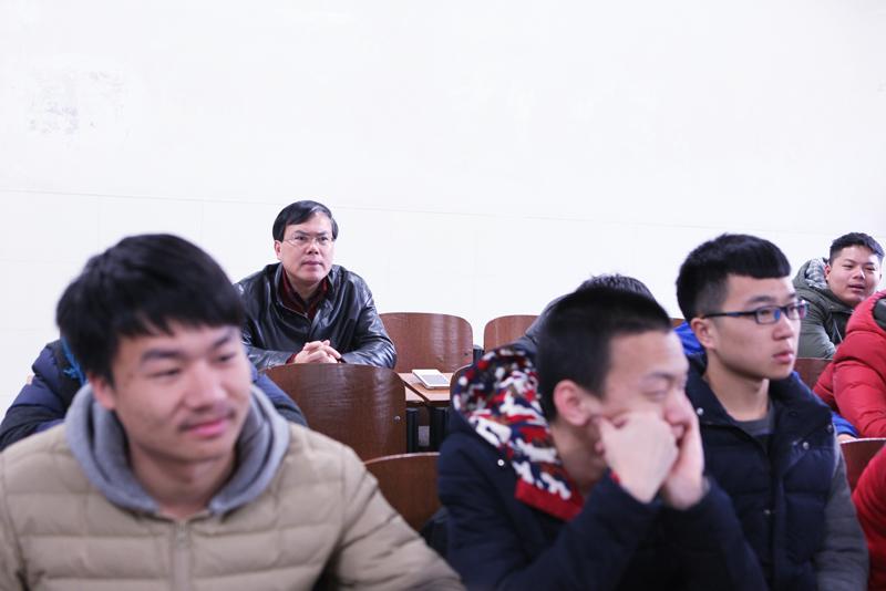 在计算机与信息工程学院专业课的课堂上,王汉青书记与同学们坐在一起,认真听课并做笔记。课后,王书记与讲课教师进行了交流,对课堂效果表示肯定,并就某些细节提出了建议。