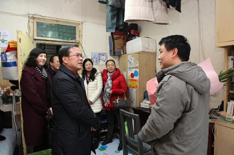 随后,王汉青书记赴学校周转楼看望慰问了工商管理学院辅导员朱伟雄,为他送去学校的关心和温暖。王汉青书记详细询问了其家庭基本情况,得知朱伟雄老师全家挤在学校的周转房中,岳母患病多年,儿子多病,自己又在上班途中摔伤后,王汉青书记鼓励他要坚定战胜困难的信心,安心工作。王汉青书记说:“眼前的困难都是暂时的,有困难可以向学校和学院反映,组织上一定会尽力帮助解决。”王汉青书记嘱咐随行工作人员,要高度重视困难教职工的帮扶工作,切实为困难教职工办好事、做实事、解难事,让教职工感受到学校的真心关怀和温暖。