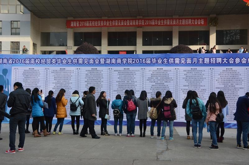 截止目前,我校共举办招聘会138场,其中中型招聘会12场,包括“就业起航”中型招聘会、区域就业市场、电商、校友招聘会,参会单位334家;举办专场招聘会126场,其中国有企业、上市公司37家,包括创维集团、中粮可口可乐、家乐福、国美电器、威莱日用品、华润万家、步步高集团、中国联通、万科集团、通程集团、龙湖地产、快乐购、森马服饰、招商银行、光大银行、全通教育、南威软件、苏宁云商、拓维信息等,共为毕业生提供岗位数5768个。