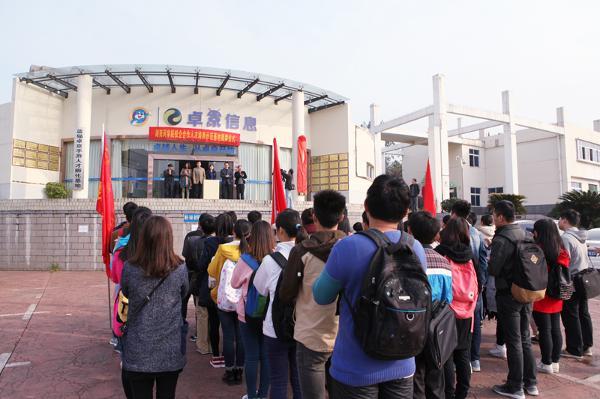副校长刘国权在揭牌仪式上致辞,他代表学校向卓景京公司为校企合作提供的技术平台表示感谢,他指出,学校将根据相关岗位的人才要求与企业导师共同制定、实施人才培养计划,进一步提高我校人才培养的针对性和有效性,提升学生的岗位技能和职业素养,提高学生的就业质量和稳定性,使其获得良好的职业发展空间,实现企业和学校间“互利双赢、优势互补”。
