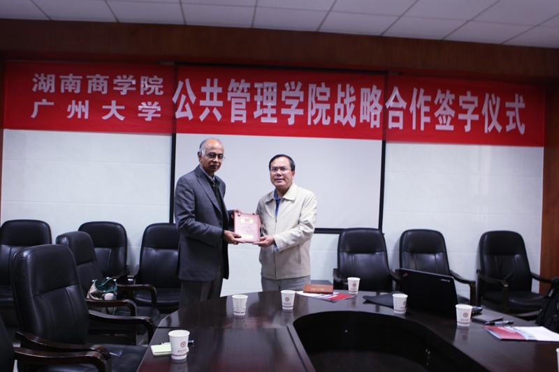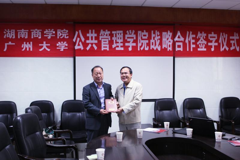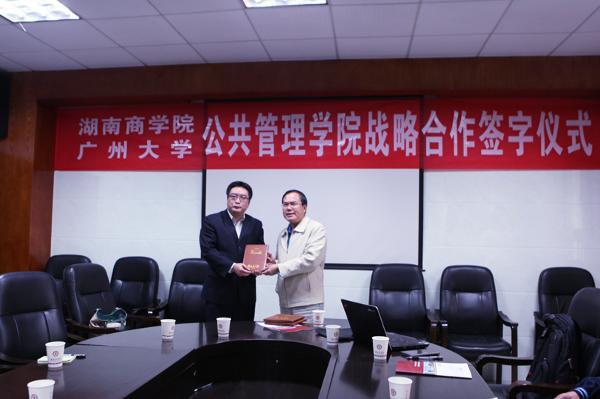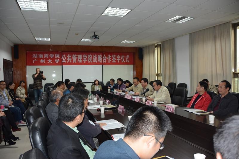 两校公共管理学院院长分别介绍了各自学院的基本情况。随后,我校公共管理学院院长向延仲与广州大学公共管理学院陈潭分别代表双方签订了战略合作协议。