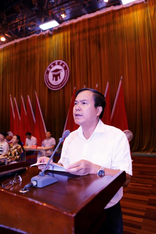 本科新生数统学院马荣序同学、硕士新生陈瑶同学、2015年省百佳大学生党员会计学院廖佩君同学、工商管理学院老师李坚飞博士,分别作为本科新生代表、硕士生新生代表、在校生代表、教师代表在南校区开学典礼上发言。本科新生计信学院刘志荣同学、2015年省百佳大学生党员会计学院廖佩君同学、财政金融学院老师杨立博士分别作为本科新生代表、在校生代表、教师代表在北校区开学典礼上发言。