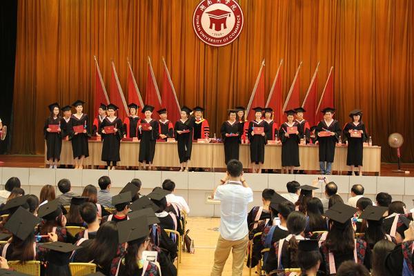 体育馆内,到处是青春的身影和喜悦的笑脸,洋溢着节日般喜庆的氛围。在庄严的国歌中,毕业典礼正式开始。副校长杨虹教授宣读了《湖南商学院关于准予胡旺等同学毕业的决定》、《湖南商学院关于授予胡旺等同学学士学位的决定》、《湖南商学院关于准予VUVANHAT(武文一)等同学毕业的决定》和《湖南商学院关于授予VUVANHAT(武文一)等同学学士学位的决定》。副校长王明高教授宣读了省级优秀毕业生通报表彰。