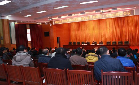 1月18日下午,根据省委组织部《关于做好2014年省管领导班子和领导干部年度考核工作的通知》要求,学校召开专门会议,对学校领导班子和校级领导干部2014年度工作进行考核测评,对学校2014年度干部选拔任用工作进行评议。