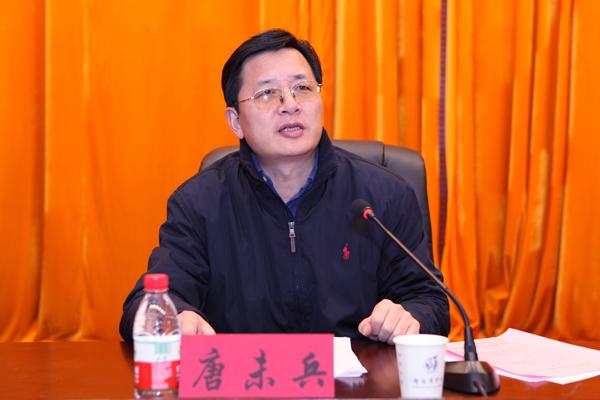 校长唐未兵在讲话中,首先代表学校向获奖的集体和个人表示祝贺。他作了题为“开拓创新 努力实现学校跨越式发展”的报告。唐未兵校长在报告中简要回顾了我校近两年来学科建设和科研工作取得的成绩:学校新增硕士学位授予单位立项建设取得圆满成功,重点学科建设水平进一步提升,科研成果质量进一步提高,科研和学科管理规范有序,学术交流活跃频繁,服务经济社会发展日趋给力。在新的阶段,我校学科建设与科研工作面临着新的挑战和机遇,唐未兵校长进一步指出,全面深化经济社会改革、开展研究生教育等都为我校科研和学科建设创造了新机遇,这些条件必将促进我校教师积极开展教研教改和科学研究活动,不断提升我校的教学和科研水平。