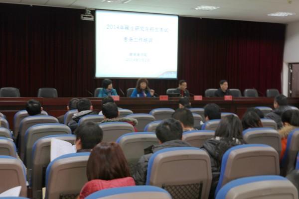 随后,研究生院院长李定珍在会上作考务培训讲座,详细介绍了考点基本情况、考务工作规范、考务工作流程及操作要求等内容。教务处副处长姜曙光在会上作了研究生入学考试培训补充说明。