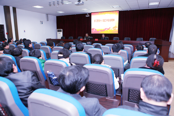 12月17日下午,学校在二办楼301会议室举行十八届三中全会精神辅导报告。报告会由校党委书记欧阳峣主持,校党委副书记夏继春主讲,全校副处级以上干部听取了报告。