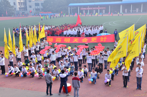 上午8点半,来自全校各二级学院的14个方阵踏着整齐的步伐依次进场亮相。一样昂扬的精神面貌,一样充满激情的斗志,不同的是他们别出心裁的入场方式。经贸学院的五色方阵在绿茵场上显得格外耀眼,伴随着音乐节奏阵型迅速变换,组成的&“奥运五环&”,彰显着经贸学子开拓进取的精神与和谐竞技的风貌;工商学院方阵气势如虹,步伐铿锵有力,撑起的&“中国梦&”&“圆申硕&”字体,表达了工管学子对梦想的执着追求,对我校申硕成功的祝贺;而设计艺术学院的方阵显得创意无限,身着汉服的少年手握如椽大笔走在队伍最前方,古朴大方,紧随其后的拉拉队表演,动感热力,古典与现代,完美结合,氢气球的放飞更是将开幕式现场气氛推向高潮。