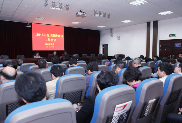 3月22日下午,学校召开2013年度党风廉政建设工作会议,全体在家校领导出席会议,全校副处级以上干部会议聆听了会议精神。会议由校党委书记欧阳峣主持。