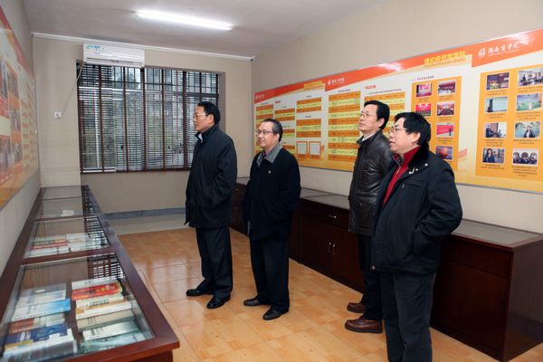 12月27日下午,专家组召开了学术骨干和研究生教育管理人员座谈会,就我校立项建设硕士学位授予单位的经验、做法、成效等进行了座谈,并在校领导欧阳峣、唐未兵、王明高及相关部门负责人的陪同下,走访了校史馆、研究生教室、教授工作室、各申硕学科资料室、经济与管理实验教学中心及研究生沙龙,对我校立项建设硕士学位授予单位的培养条件、公共设施等情况进行了实地考察。