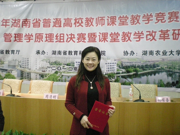 近日,湖南省普通高校教师课堂教学竞赛(管理学原理组)决赛在湖南农业大学举行,我校工商管理学院李艳红博士在决赛中获得了一等奖。