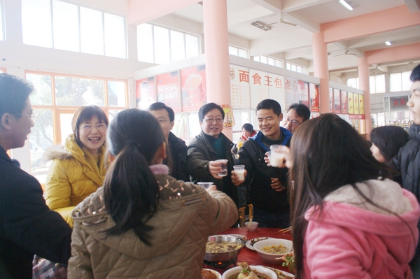 在阵阵欢声笑语中,学校领导、老师和同学们频频举杯,互致节日的问候和温馨的祝福。曾伏秋副校长为每一桌敬酒,亲切地询问了留校同学们的学习、生活情况,嘱咐同学们要和家里多联系,给亲人拜年,特别叮咛大家要保重身体、注意安全,并希望同学们在欢度节日的同时,充分利用假期,努力学习,进行有益的社会实践。同学们表示虽然农历小年不能与家人在一起,但是在这个特殊的日子里能够与校领导、老师、同学们一起度过感到很荣幸,很温暖。