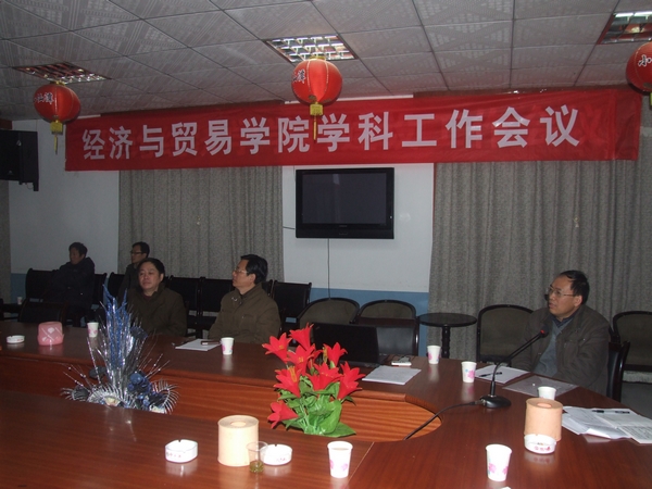 为了进一步推动理论经济学申硕学科和省级重点建设学科的建设,经济与贸易学院于2011年12月31日上午召开学科建设工作会议。校长唐未兵教授、副校长王明高教授、部分学院和职能处室的主要负责人,以及理论经济学学科的全体成员出席了会议,会议由经济与贸易学院党总支书记彭炳忠教授主持。
