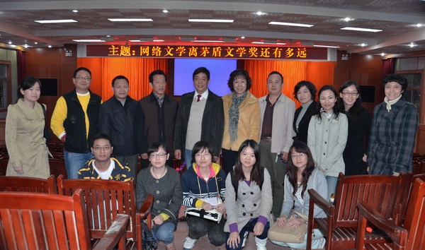 10月27日下午,国家社会科学基金学科评议组专家、中南大学文学院院长、博士生导师欧阳友权教授应邀来我校作了题为&“网络文学离茅盾文学奖有多远&”的学术讲座,副校长杨虹出席讲座。本次讲座由文学院院长郑宪春教授主持。