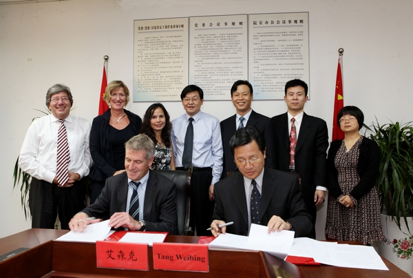 10月14日下午,荷兰萨克逊大学代表团一行来我校访问。校长唐未兵代表我校与荷兰萨克逊大学签署了合作框架协议书及联合培养市场营销专业本科生中外合作办学项目协议书。