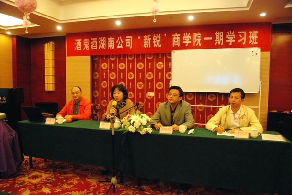 典礼上,杨虹副校长首先致辞,她向全体学员介绍了我校的基本情况,表示我校将对和酒鬼酒湖南公司的本次培训合作给予大力支持,并提出在今后的教学和服务中将以优秀的师资、灵活的教学方式、可靠的质量来满足企业的培训需求。酒鬼酒湖南公司苏晓飚总经理在讲话中对本次校企合作表示了高度的赞赏。他从企业需要高素质人才的角度出发,阐述了本次组织&“新锐&”商学院的意义,并要求全体学员在学习过程中进一步增强市场意识、转变思想观念,了解最新企业管理与市场营销的技巧及方法;提高业务能力和综合素质。随后,来自市场销售部的夏一星和来自长株潭片区的刘晓燕代表新学员发言,表示一定珍惜这次难得的培训机会。
