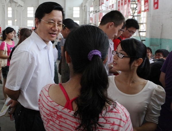 校领导首先来到新生报道大厅,看望迎新工作人员,了解新生报到情况。校领导详细询问了各学院、各部门在迎新工作中关爱学生的特色做法及遇到的问题,向刚刚报到的新生和陪同家长表示欢迎,向参加迎新的师生们表示慰问。为了让家庭经济困难的学生顺利入学,学校在迎新现场开辟了&“绿色通道&”,让暂时不能支付学费的同学先报名注册,之后缓交学费。