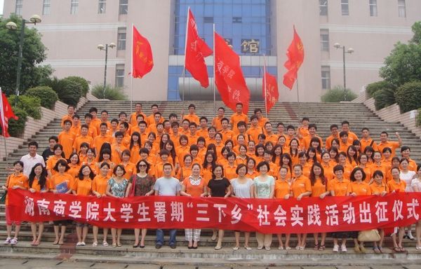 校团委办公室主任曹文就我校2011年暑期&“三下乡&”社会实践活动做了全面介绍,并做了安全培训。各二级学院与校团委现场签订了《湖南商学院2011年大学生暑期&“三下乡&”社会实践工作安全责任书》。公共管理学院罗湖平博士作为指导老师代表发言,就如何选题、课题调研步骤、撰写课题要求等给学生做了全面辅导。校学生会主席张罩东同学带领此次&“三下乡&”全体志愿者宣誓。校团委书记黄艳娥就学生暑期&“三下乡&”社会实践安全纪律进行了强调,并希望同学们发扬团结拼搏、求真务实、开拓进取的优良作风,严格要求自我,积极投身实践,为我校暑期&“三下乡&”活动创造更加优异的成绩。(曹文)