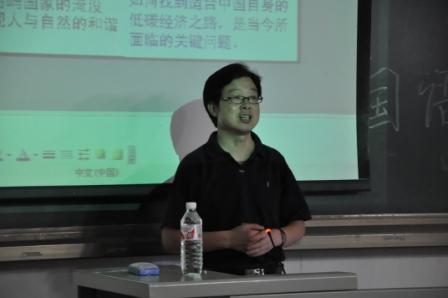 副校长曾伏秋教授以&“我与湖南同发展——四化两型战略与新型工业化&”为题,首先从三国博弈谈起,分析了制定科学合理战略的重大意义。随后他介绍了改革开放以来湖南经济社会发展以及四化两型战略与新型工业化的实质内容,强调四化两型战略是湖南省实现科学发展必须坚持的原则,而新型工业化是推进四化两型的重要途径。结合主题,曾伏秋副校长还为同学们讲解了什么是低碳经济以及能源产业的发展现状和前景。讲座的最后,曾副校长倡导全体师生树立环保意识,从我做起,从身边点滴小事做起,为促进湖南经济发展贡献力量。